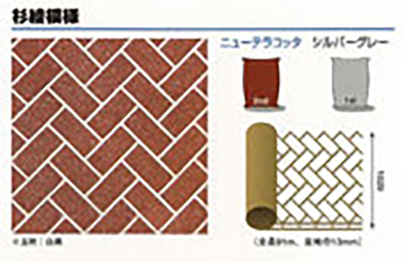 ペーパーコンクリートはペーパーテンプレートを使い、固まる前のコンクリートに成形と着色を施し、レンガや自然石などの自然な風合いや模様を表現する工法です。